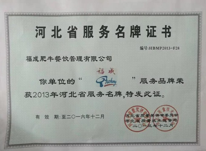 河北省名牌證書