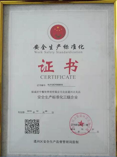安全生產標準化證書