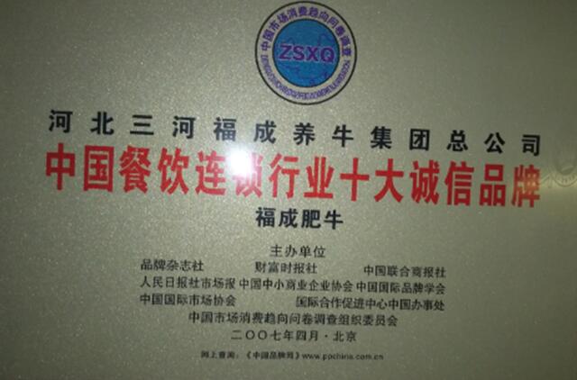 餐飲連鎖十大誠信品牌